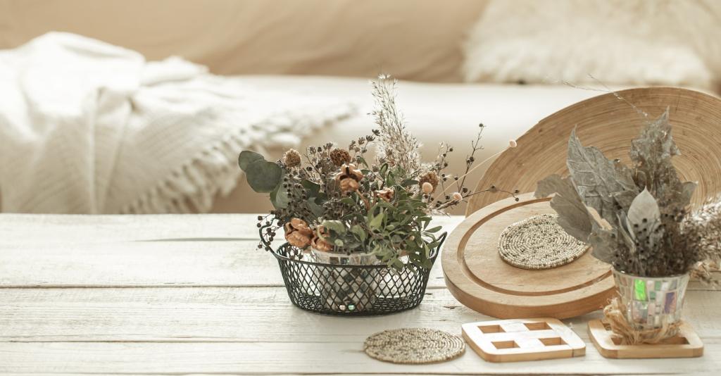 Wähle eine ruhige Basis in Sand, Salbei oder Graphit und setze mutige Akzente an Fronten, Kanten oder Füßen. So werden Upcycling-Möbel modern, ohne ihre Herkunft zu verleugnen, und fügen sich harmonisch in bestehende Räume.